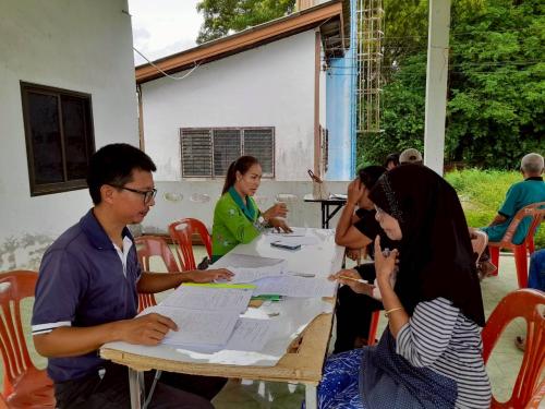 นางสุจิรา สัมพันธ์ พัฒนาการอำเภอควนเนียง มอบหมายให้นางสาวโนรี มณีรัตน์ นักวิชาการพัฒนาชุมชนชำนาญการ นางกนกภัณฑ์ เพ็ชรรัตน์ นักวิชาการพัฒนาชุมชนชำนาญการ และนายนพดล เจนทะเล นักวิชาการพัฒนาชุมชนปฏิบัติการ ลงพื้นที่ประชุมติดตามการดำเนินงานโครงการแก้ไขปัญหาความยากจนบ้านปากบางภูมี ณ ศาลาอเนกประสงค์บ้านปากบางภูมี หมู่ที่ 3 ตำบลรัตภูมิ อำเภอควนเนียง จังหวัดสงขลา