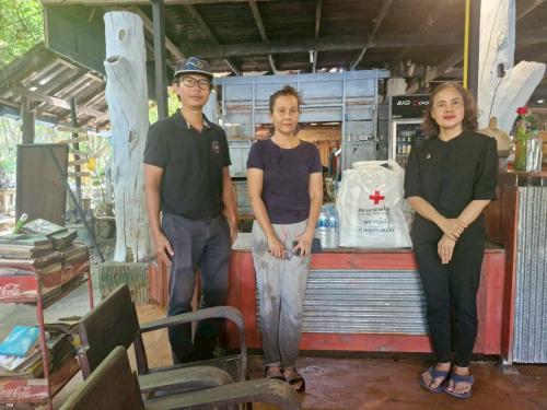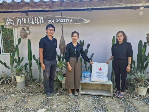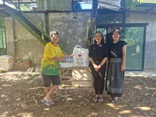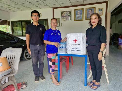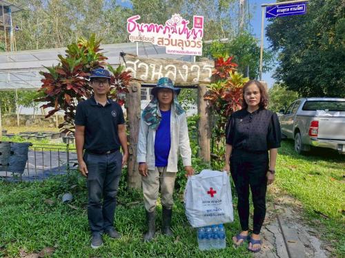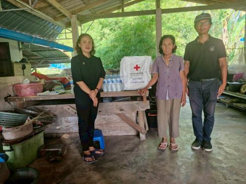 ถุงยังชีพได้รับการสนับสนุนจากสำนักงานกาชาดจังหวัดสงขลา สภากาชาดไทย โดยมีนายสมนิตย์ สุขแก้ว ปลัดอำเภอ ที่ทำการปกครองอำเภอควนเนียง เป็นผู้มอบถุงยังชีพและน้ำดื่ม จำนวน 15 ชุด