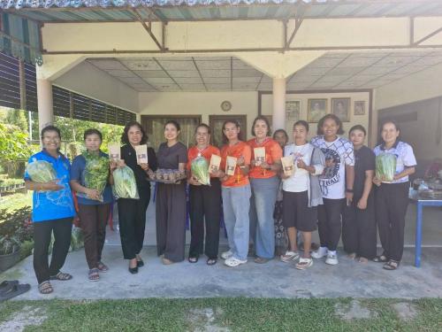นางสุจิรา สัมพันธ์ พัฒนาการอำเภอควนเนียง พร้อมด้วยเจ้าหน้าที่พัฒนาชุมชน ลงพื้นที่ดำเนินโครงการส่งเสริมการจัดตั้งและพัฒนากลุ่มอาชีพ ณ บ้านสวนริกิตพอเพียง เลขที่ 57 หมู่ที่ 13 ตำบลรัตภูมิ อำเภอควนเนียง จังหวัดสงขลา