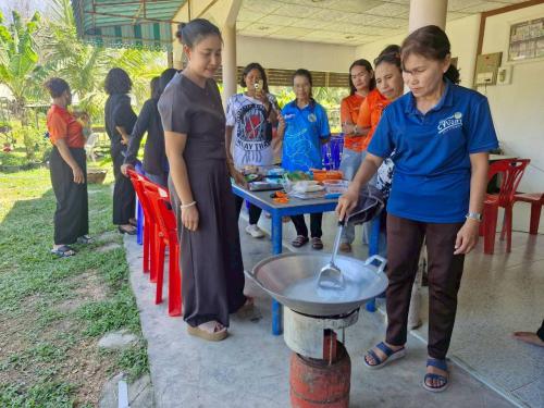 ภาคบ่าย นางกนกพร ละอองพันธ์ เป็นวิทยากรภาคเอกชนในการบรรยายเกี่ยวกับการพัฒนากลุ่มอาชีพสู่ความยั่งยืน และได้สาธิตการทำถั่วเคลือบแก้วโอวัลติน/โกโก้ ทั้งนี้ได้ให้ครัวเรือนสัมมาชีพได้ทดลองทำจริงตามสูตรการทำถั่วเคลือบแก้วโอวัลติน/โกโก้ ผลลัพธ์ออกมาเป็นที่น่าพอใจ และสามารถจัดตั้งกลุ่มไปประกอบอาชีพ สร้างงาน สร้างอาชีพ สร้างรายได้ให้แก่ครัวเรือน