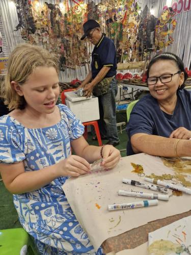 สำหรับการจัดกิจกรรมภายในซุ้มวัฒนธรรม ได้รับความสนใจจากชาวสงขลาจากอำเภอต่าง ๆ และไฮไลท์คือ ชาวต่างชาติจากประเทศสหรัฐอเมริกาคุณแม่กับคุณลูกสนในการแกะสลักหนังรูปหนังตะลุงและร่วมแต่งแต้มสีสันให้กับรูปนกแก้วจากหนังวัว รวมถึงเด็ก ๆ ให้ความสนใจเข้ามาร่วมระบายสีกันอย่างคึกคักและได้ปลดปล่อยจินตนาการ ทั้งนี้ ขอขอบคุณภาคีเครือข่ายที่ได้ร่วมด้วยช่วยกันรังสรรค์ซุ้มวัฒนธรรมอำเภอควนเนียงและกิจกรรมภายในงานทั้ง 3 วัน มา ณ โอกาสนี้ แล้วเจอกันใหม่ในปี 2570