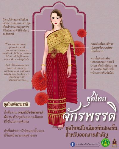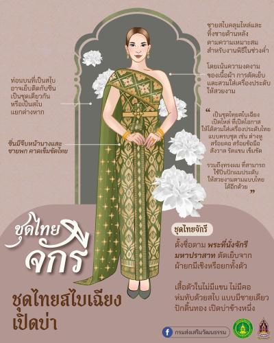 ด้วยกรมส่งเสริมวัฒนธรรม กระทรวงวัฒนธรรม ผลักดัน "ชุดไทย" สู่การขึ้นทะเบียนเป็นมรดกภูมิปัญญาทางวัฒนธรรมที่จับต้องไม่ได้ของมนุษยชาติ (UNESCO) เพื่อประกาศศักดิ์ศรีงานฝีมือไทยสู่สู่สายโลก "ชุดไทยพระราชนิยม" กำลังก้าวสู่สายชาวโลกอย่างสง่างาม ภายใต้พระราชดำริของสมเด็จพระเจ้าลูกเธอ เจ้าฟ้าสิริวัณณวรี นารีรัตนราชกัญญา ในการสืบสาน ต่อยอด และเผยแพร่มรดกทางวัฒนธรรมไทย อันมีรากฐานจากพระราชกรณียกิจอันยิ่งใหญ่ของสมเด็จพระนางเจ้าสิริกิติ์ พระบรมราชินีนาถ พระบรมราชชนนีพันปีหลวง